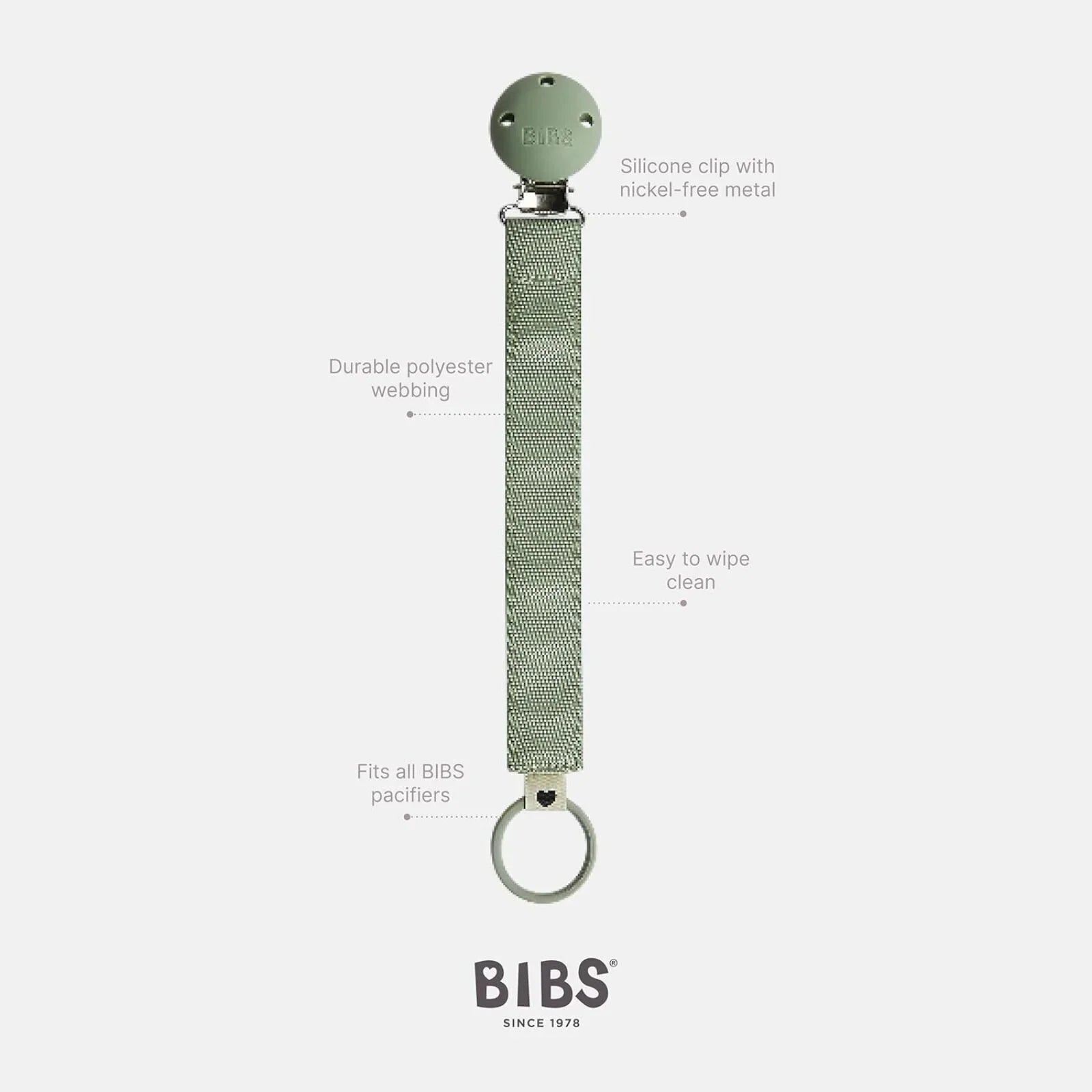 BIBS Soother Clip Ribbon - Sage